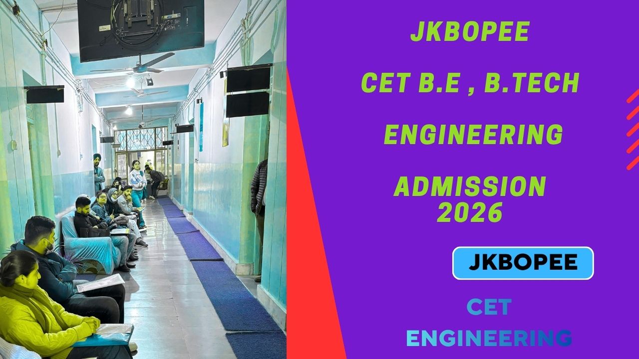 JKBOPEE Jammu & Kashmir Board Of Professional Entrance Examination released official notification for sit in entrance exam hall for taking seat in B.E/B.Tech Engineering session 2026. Admission entrance test for these courses will be as per scheduled date. The date of advertisement admission released on 18-03-2026 vide notification number 044-BOPEE of 2026. The online application process start from 19th of March 2026 and last date is 1st April 2026. Candidates area advised that visit official website and download notification e brouchure to get full details abou online process of this engineering application form. the selected candidates are get admission as per their merit in Governemnt Engineering Colleges and Private Colleges. Candidates must check eligibility criteria, age limit, age relaxation, syllabus, admit card, venue of exam, application fee, duration of exam, exam center and all other related information said e brouchure/notification. JKBOPEE Admission For Engineering Courses.