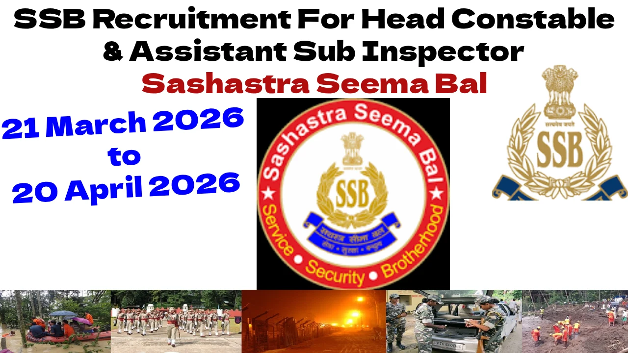 Sashastra Seema Bal SSB released advertisement for recruitment online process vide Advertisement Notification Number 524/RC/SSB/Combined Advt./CT to SI (Non-GD)/2025 for appointment 83 posts as Assistant sub Inspector (Radiographer, Pharmacist, Operation Theatre Technician, Dental Technician) and Head Constable (Laboratory Assistant, Physiotherapy Assistant) & Constable (Nursing Assistant cum Medic) in Group C Non-Gazetted & Non-Ministerial Cadre. All posts as per recruitment notification will be temporary but likely to be continued in the said department. All interested candidates who are desirous to fulfill all criteria and want apply online for this must visist official website and download advertisement notification and read carefully this official job recruitment notification of ssb, so that at the time of form filling time no mistake take place. The application process start from 21 March 2026 and last date is 20 April 2026. Candidates are advised that check all eligibility criteria before going to apply online, age limit, age relaxation, age minimum and maximum, application fee, admit card, syllabus, pay scale, category wise posts and all other related information are given in the notification. SSB Recruitment For Assistant sub Inspector & Head Constable.