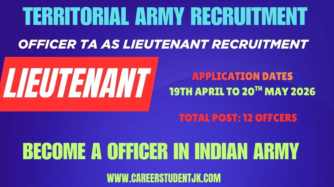 Indian Army_Territorial Army (TA) released online application for officer recruitment 2026. Interested candidates can join as officer post_Lieutenant as per official notification issued. The online application for this recruitment in TA shall start from 20th April to 19th My 2026. Interested candidates can visit official website and download full notification and read this notification step by step so that no mistake takes place at the time online process of this application. The candidates can apply for this in online mode online, no offline application will be accepted. Candidates are requested that before online process start check all eligibility criteria, age limit, age relaxation, age minimum and maximum for category wise and general, scale of pay for appointee, syllabus for examination, admit card related details, application fee and all other information are given in the information recruitment notification for Officer(Lieutenant) 2026. Join Indian Army Officer 2026.