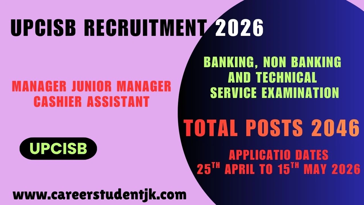 UPCISB-Utter Pradesh C-operative Institutional Service Board released online application form for different posts in Combined Cooperative Banking, Non Banking and Technical Services Examination 2026 vide Advertisement Notification No. A-2/G.R./2026 Dated 14-04-2026. The application for this recruitment start from 25th April 2026 and last date is 15th May 2026. The recruitment for different post categories viz Manager, Junior Manager, Assistant Engineers, Cashier, Junior Engineer & other cashier & technical posts which will be read from official advertisement notification. Candidates who are willing to apply, read notification before apply online process. Candidates are requested check eligibility criteria of this recruitment, age limit, age relaxation, application fee, total posts, category wise posts, pay scale, examination related, selection criteria and all other information are given in the notification. UPCISB Recruitment 2026